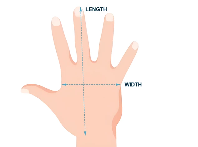 • 1. Stretch the measuring tape from the base of your palm to the tip of your middle finger.