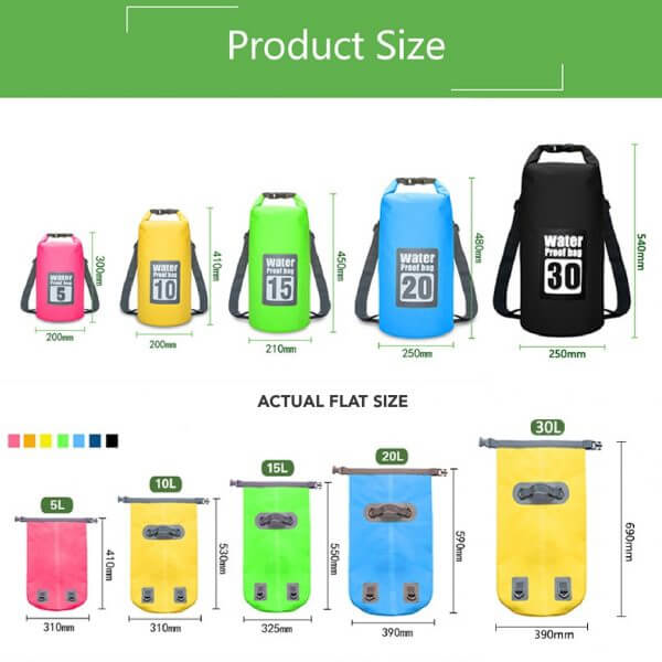 Includes 5, 10, 15, 20 and 30-litre sizes to easily organize and protect all your gear, ranging from lifesaving layers to mobile phones and cameras. It is the perfect lightweight bag for rafting, kayaking, the beach, camping, hiking, diving, and any other activities when you want to protect your valuables from water.