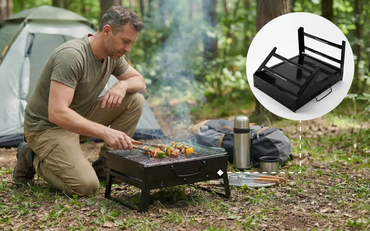 Bought this foldable grill for beach trips with friends. It heats quickly, handles plenty of skewers, and the stainless surface wipes clean with just a damp cloth.