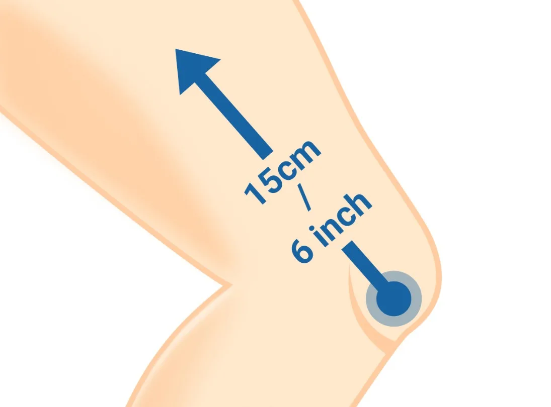 - 2. Wrap the measuring tape around the widest part of your thigh from about 15cm/6" above the midpoint of your kneecap.