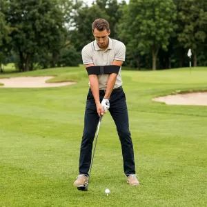 Love how this tool reminds me to keep my arms together. It’s lightweight and doesn’t bother me during practice swings at all.