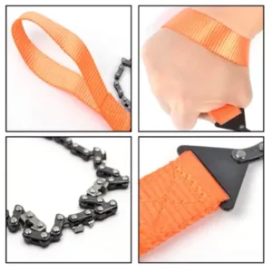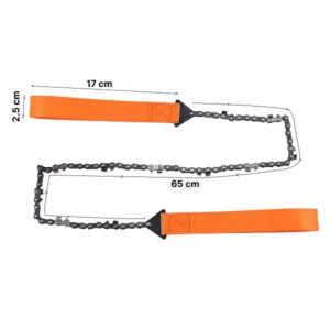 The THREO Pocket Chain Saw is made of durable carbon steel with super-strong nylon handles with firm stitches. This heat-treated material reduces binding when cutting. The handles make our tool easy to grab and hold without cutting into your hands or causing blisters. Their extended diameter also creates enough space for protective gloves.
