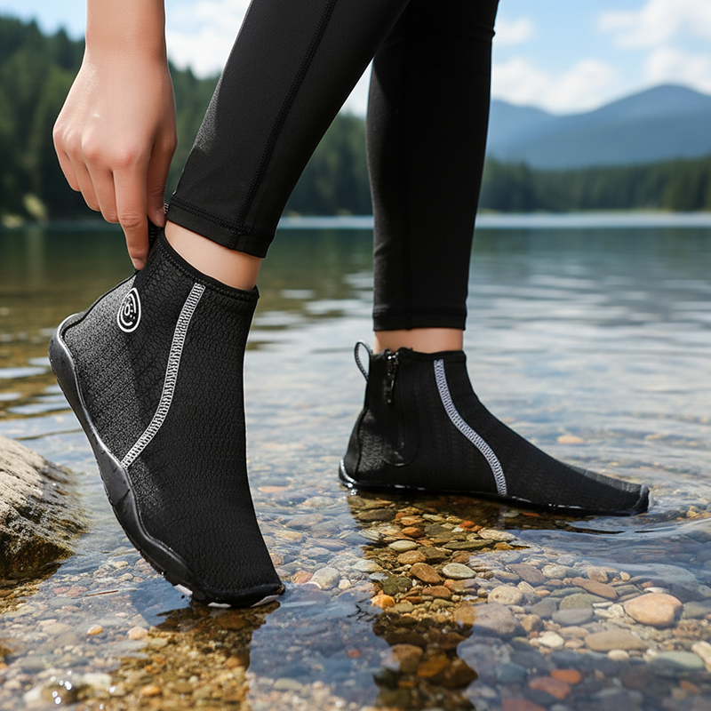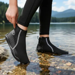 High tops shield ankles from sharp rocks and hot sand. Durable soles reduce slips, giving steady balance on wet or rough ground.