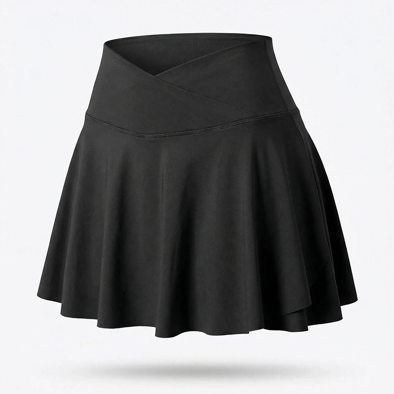 The skort looks simple but feels fancy on. The fabric glides over my skin, and I like how the shorts underneath stay hidden yet supportive.