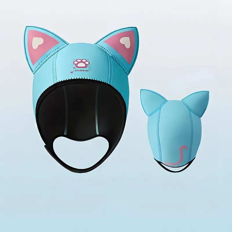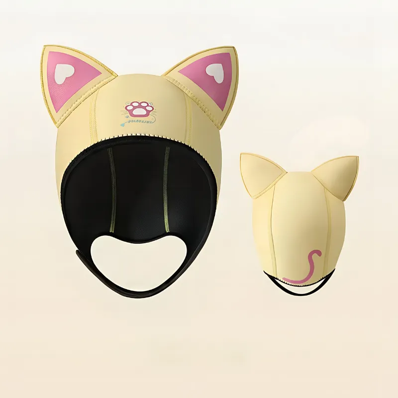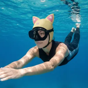 No more messy hair or cold head after diving lessons. My sister wants one too because the cat ears make it look super cool!