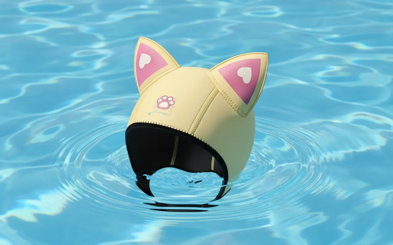 I absolutely love wearing my cat ear cap at the pool. It keeps my head warm, never slides off, and looks adorable in photos!