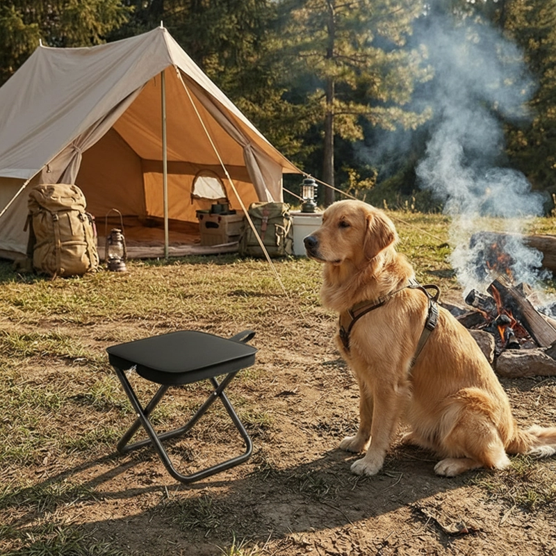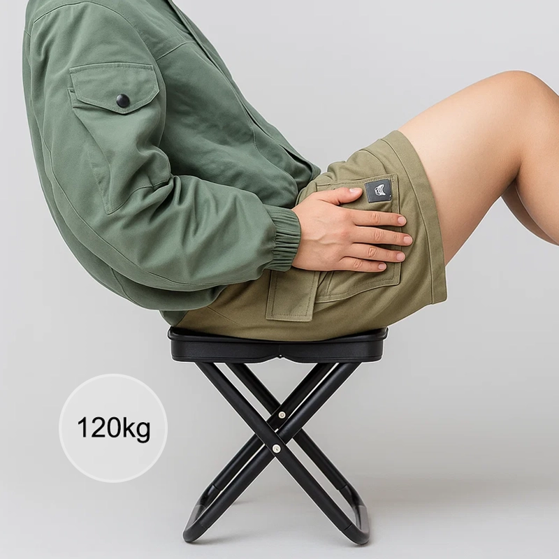 Camping is better with this folding seat. Doesn’t take up any space and holds even my big cousin. Feels super safe to sit on.