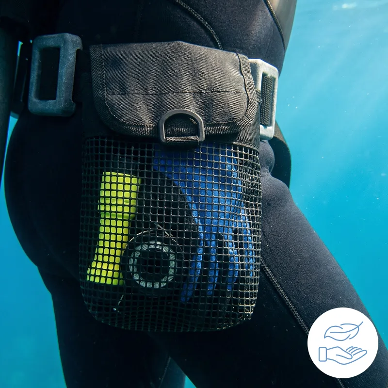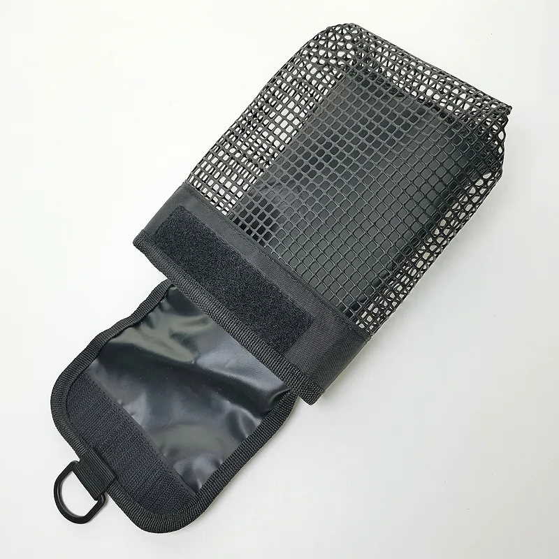 I use the pouch for night dives. My spare light and glow sticks stay close at my hip, easy to spot through the mesh, and dry fast between dives.