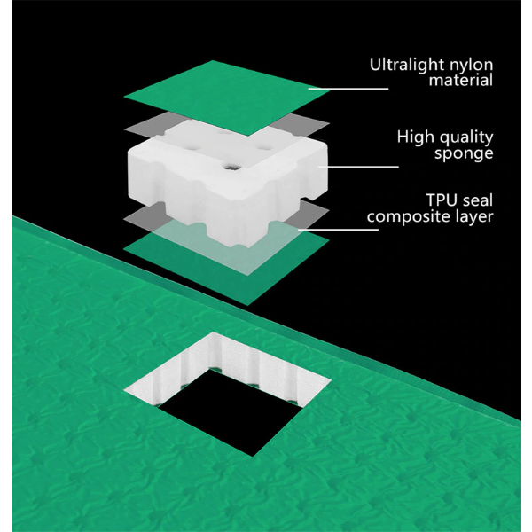 Our camping pad is made from high-quality 20D nylon and a sponge on the inside. Its exterior is covered with TPU plastic for added protection and to improve durability. Additionally, it has an anti-slip silicone design. The foam pad will protect you from the cold. It provides considerable insulation from ground temperature. While the pad is self-inflating, it only self-inflates enough to provide excellent insulation, however, you can control the exact firmness of the pad by blowing into the valve.