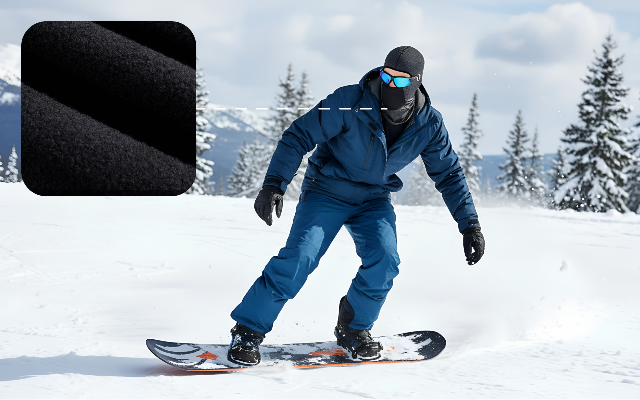 Cationic fleece forms a strong barrier against harsh gusts. Your skin stays protected and free from discomfort.