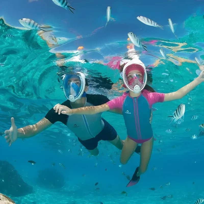 The panoramic view is fantastic. I see everything clearly under the sea without any fogging. The straps kept my hair comfy we came back with amazing memories documented!