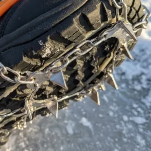 I keep these in my car for surprise snowstorms. They stretch over sneakers fast and grab icy parking lots firmly. My balance feels way more controlled.