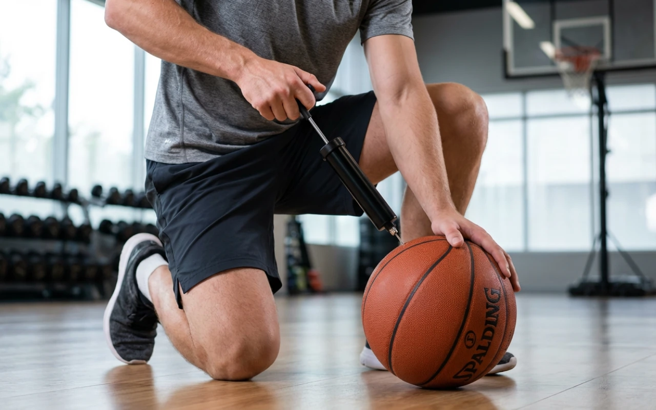 I use this metal inflator with my bike pump for basketball nights. It connects tight, no air hissing out, and brings flat balls back to life quickly.