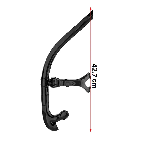 This snorkel works great. Center mounted so it doesn’t pull left or right. Works with any goggle or mask.