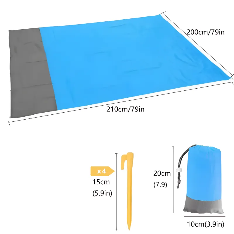 My dog and I love this beach mat! No more gritty spots under my lunch, and her paws don’t leave a mess. The anchors are a nice touch.