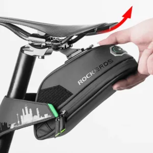 I love this cycling bag! It’s roomy enough for all my stuff like my phone and wallet but doesn’t feel bulky. The waterproof material is perfect for when it starts to drizzle unexpectedly. Attaching it to my bike was a breeze, and I can grab it quickly when I stop somewhere.