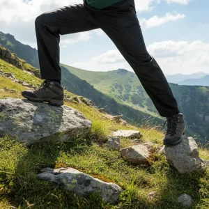 Really stretch well when I’m scrambling over rocks. Never felt restricted, and they keep out water even in downpours.