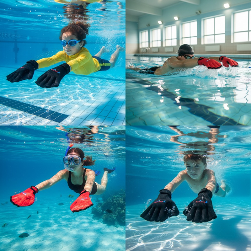 swimming gloves, swimming paddles, swimming hand paddles, webbed gloves