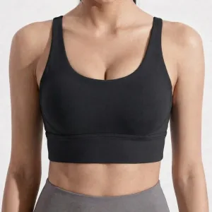 The cross-back style looks super cute under tanks, and it gives me support for running. Fits snug but never feels too tight.