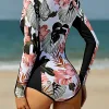 Be fully prepared to enjoy your water activities — THREO long-sleeve swimsuit will give you extra coverage! It will keep you safe from getting sunburned while offering a flattering silhouette. It’s made of ultra-stretchy material for optimal movement in the water and is practical for coverage and UV protection. Our swimsuit has a sleek one-piece design in tropical prints, making it an excellent pick for pool workouts, swimming, surfing, or diving.